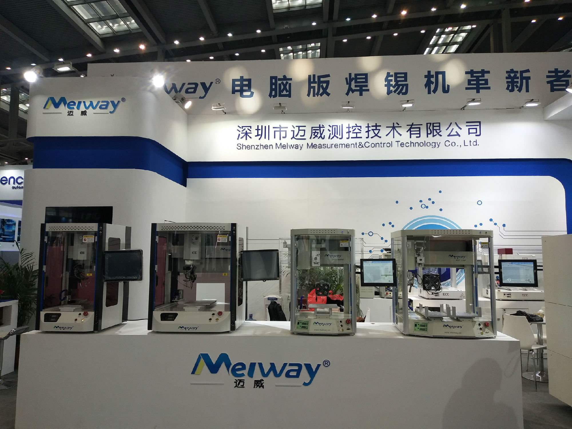 展會(huì)中,邁威展示了最新技術(shù)的自動(dòng)焊錫機(jī),包括第七代桌面式焊錫機(jī)、模組式在線焊錫機(jī)、激光焊錫機(jī)等,其中桌面式焊錫機(jī)、在線式焊錫機(jī)和激光焊錫機(jī)在展會(huì)現(xiàn)場(chǎng)吸引了大量客戶的關(guān)注。